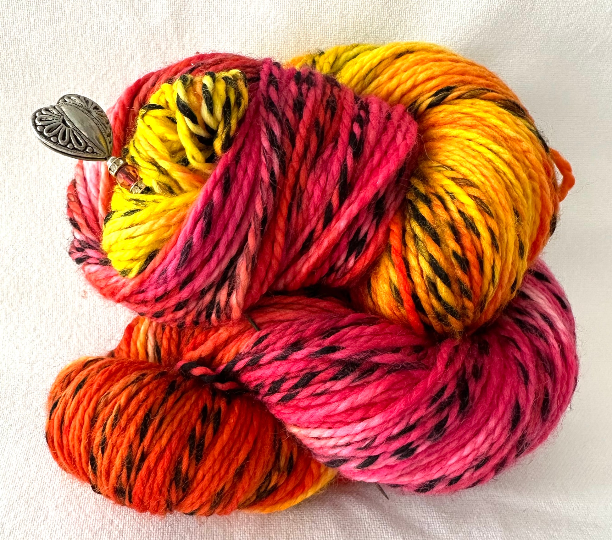 Spun to create a zebra effect, but we think it looks great with the colors of flowers. Made with US grown Shaniko Wool, this bouncy DK weight yarn has all the vibe.